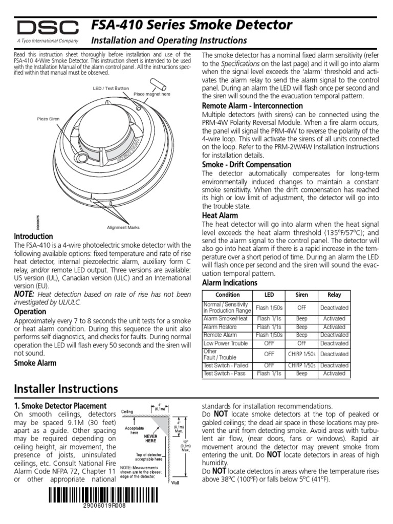 Dsc 4 Wire Photoelectric Smoke Detector Fsa-410 / Een nieuw, ongebruikt object zonder enige slijtage.. Fixed temperature heat detector, internal piezoelectric alarm, auxiliary form c relay, and/or remote led output. The fsa series of photoelectric smoke detectors are compatible with all dsc control panels. There was a problem filtering reviews right now. Diverse models and brands of. All horns will remain synchronized in the temporal pattern for.