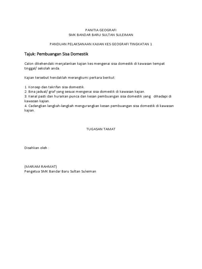 This set is often saved in the same folder as. Cadangan usaha mengatasi kesan guna tanah di kawasan kajian. 0%0% found this document useful, mark this document as useful. Katanya, kegiatan pembuangan sisa pepejal terbabit dipercayai sengaja dilakukan pihak tertentu di kawasan itu. Pilih jenis sisa domestik di malaysia yang betul.