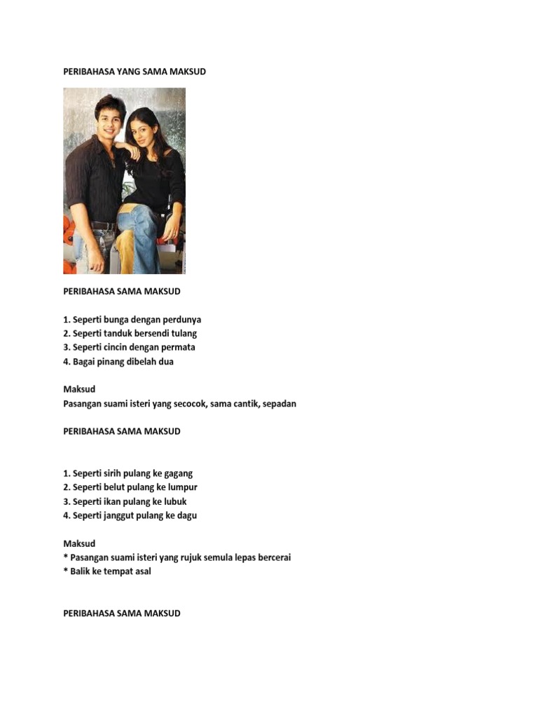 Adik daripada ibu bapa yang sama; Semua peribahasa dengan kata tangan, selalu ada di situs jagokata. Berikut adalah antara peribahasa yang mempunyai maksud yang sama atau hampir sama. Peribahasa sama maksud tentang sikap manusia yang pelbagai ragam walaupun dari kumpulan yang sama. Perahu sudah di tangan, perahu sudah di air. Peribahasa yang sama maksud 1 d47e8o6vgdn2. Susunan peribahasa yang membawa maksud yang sama atau membicarakan perkara atau sesuatu keadaan yang hampir sama. Keluarga atau sahabat yang sama sepakat dalam mengerjakan sesuatu pekerjaan, sama ada yang ringan ataupun. Sudah siap sedia segala keperluan untuk melakukan suatu pekerjaan. Tahukah anda terdapat lebih daripada satu peribahasa melayu yang mempunyai maksud yang sama. Peribahasa adalah susunan perkataan yang mengandungi maksud tersirat dan yang lahir daripada cetusan fikiran orang melayu dahulu. Tidak tahu yang mana satu dapat dipilih. Setiap orang yang selalu mencari orang yang sama darjat, pangkat, atau kedudukan dengannya.
