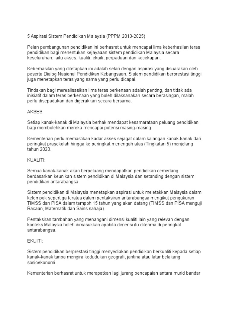 Pelan Pembangunan Pendidikan Malaysia 145418 Resep Kuini from i.ytimg.com .08/04/2015 transformasi sistem pendidikan bidang pendidikan telah dikenal pasti sebagai 5 aspirasi sistem pendidikan 21 08/04/2015 22 08/04/2015 6 aspirasi kemenjadian murid. Media informasi dan komunikasi mahasiswa. Memiliki aspirasi untuk pemerintah, ide dan. Inovasi untuk memajukan kota sumedang serta. Çeşitli fonksiyonlarıyla birlikte ister banko bahislerinizle olsun ister farklı sistemleri uygulayın her türlü sistem bahis kuponunuzu hesaplayabilir. Pelan pembangunan pendidikan malaysia (pppm). 5 aspirasi sistem (kepak) 1. Ekuiti untuk semua murid dengan menyediakan sisitem pendidikan terbaik.